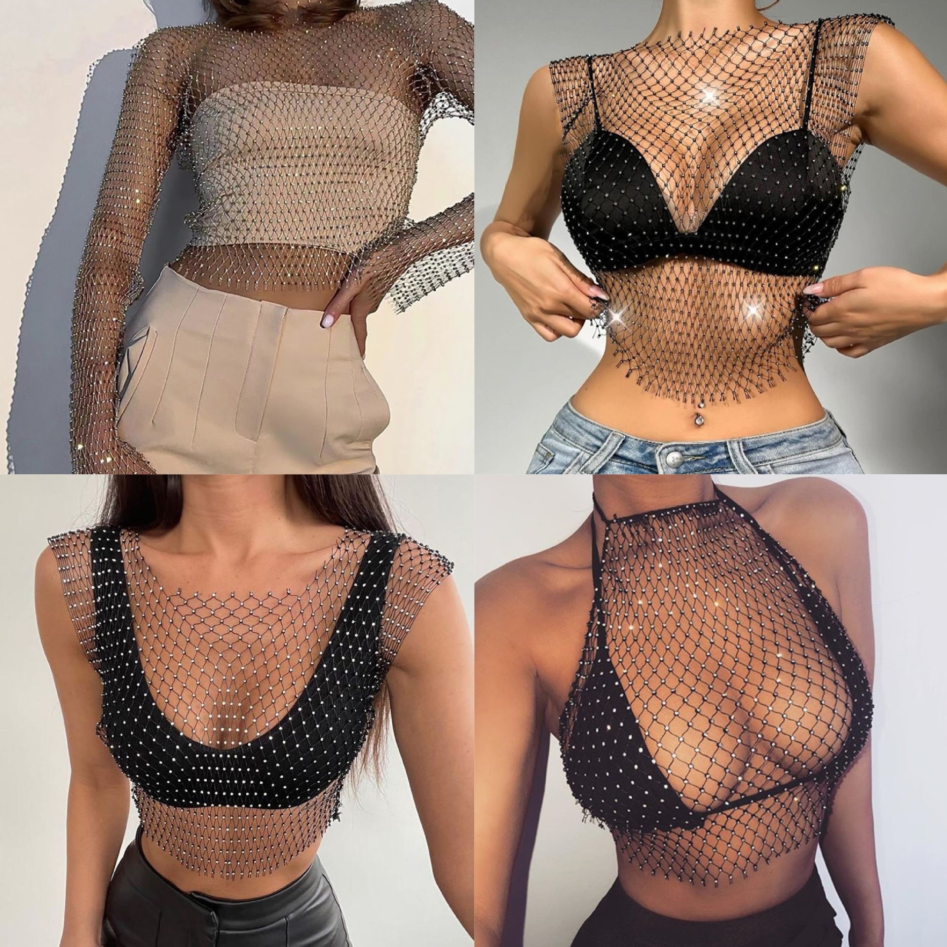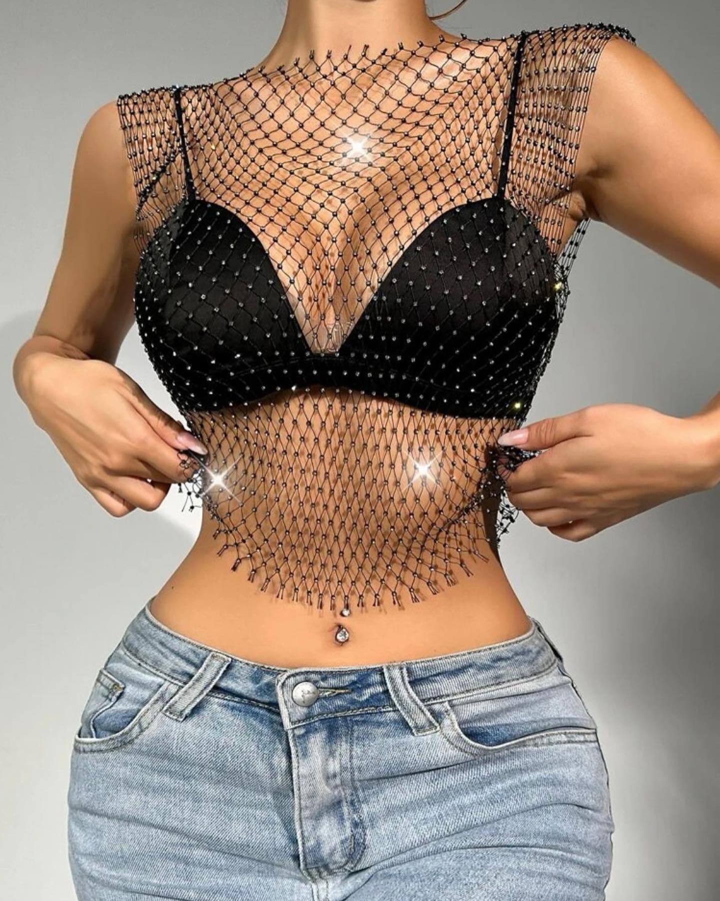 ✨ Step into the Spotlight with Our Sparkling Diamond Mesh Top! ✨