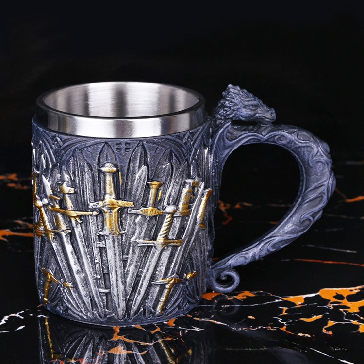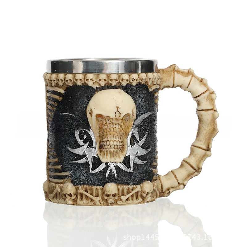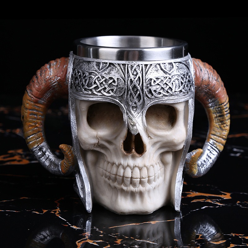 Hand-poured resin skull or snarling wolf head—no glass to shatter when the mosh pit gets wild. Inside, food-grade 304 stainless steel keeps whiskey cold and mulled wine hot, hour after hour.