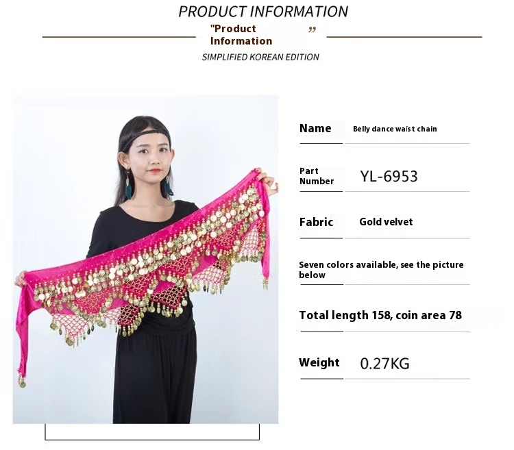 • High-Density Coins: Featuring high-density metal coins, creating a mesmerizing movement and producing a crisp, rhythmic sound to enhance your dance performance.