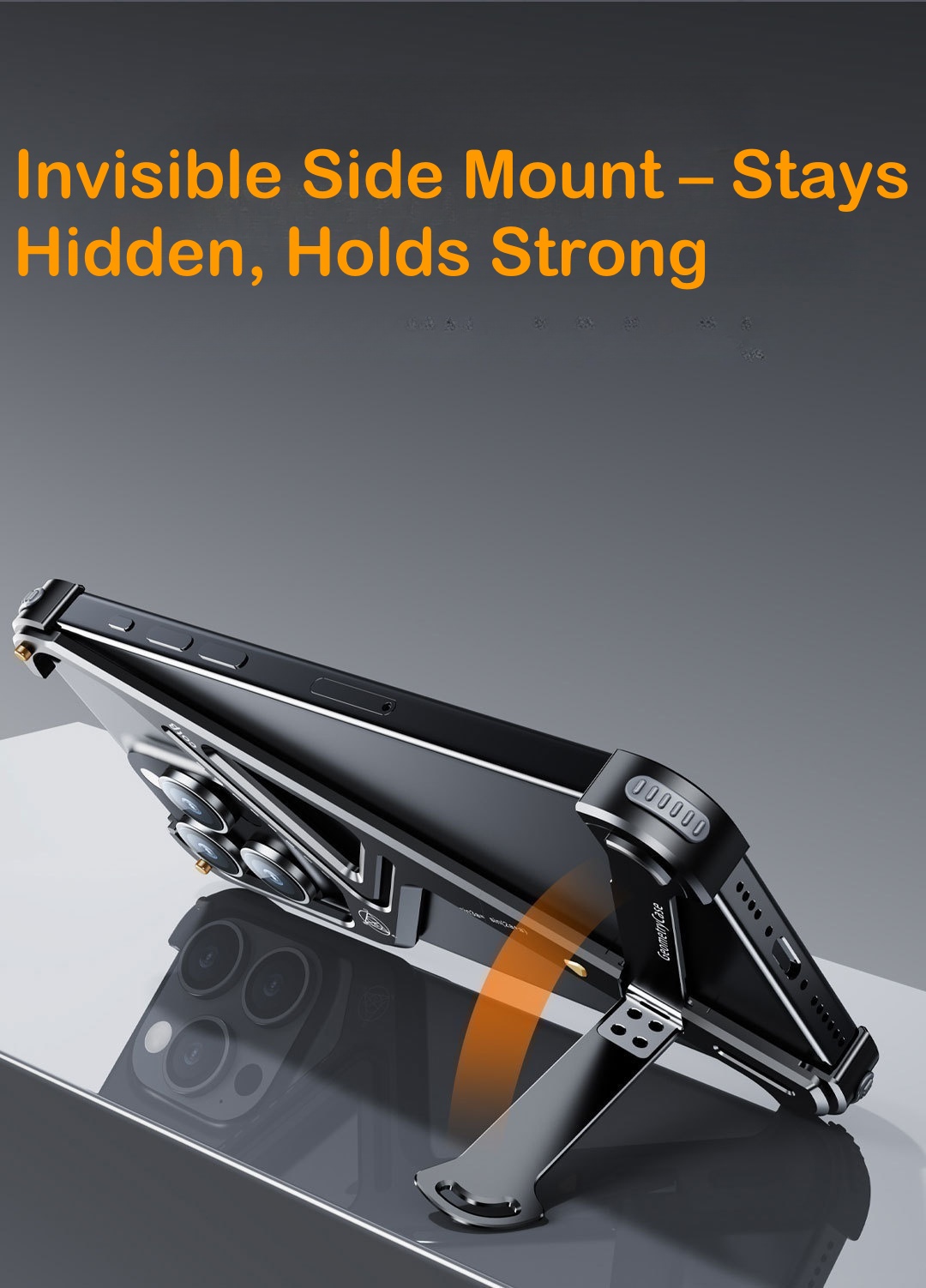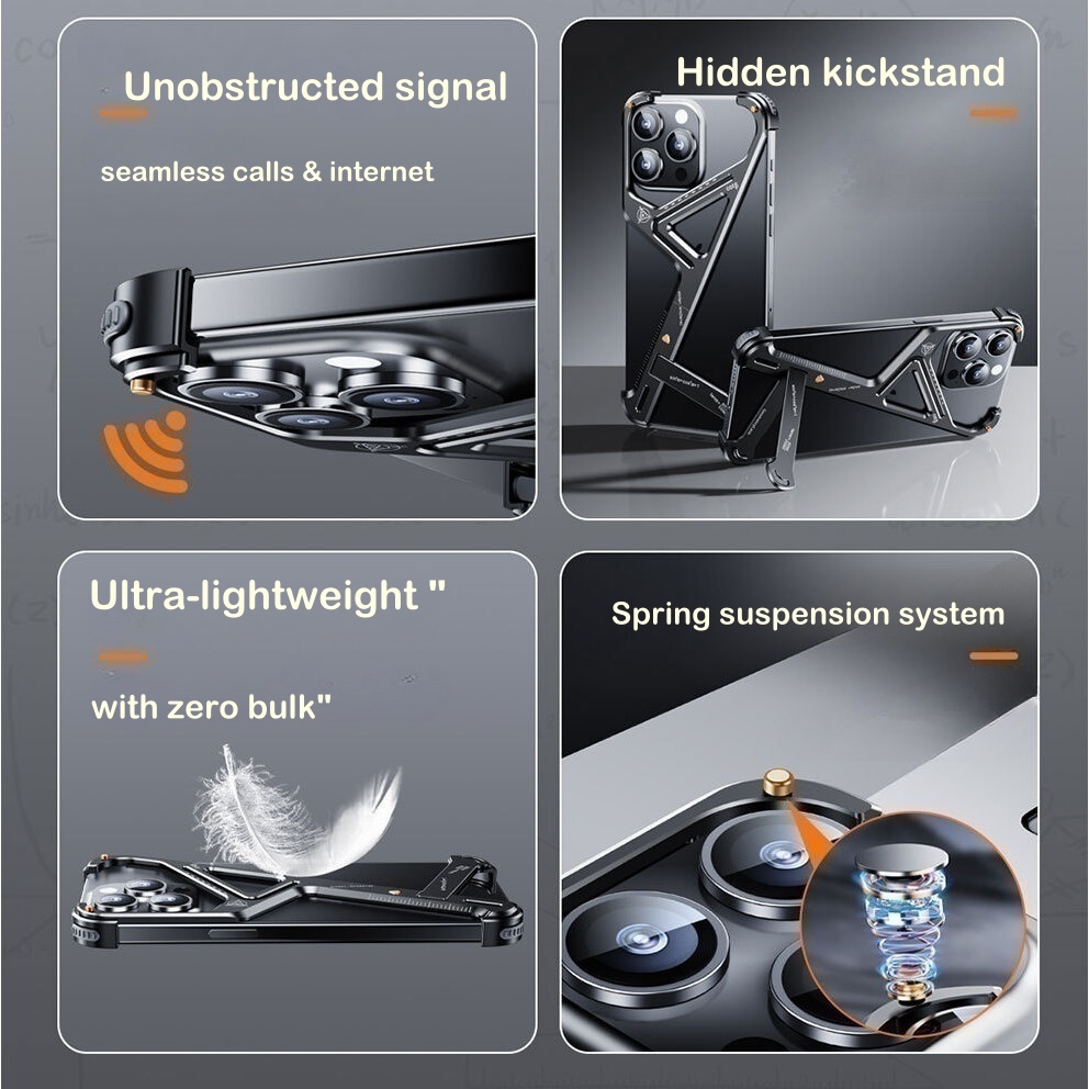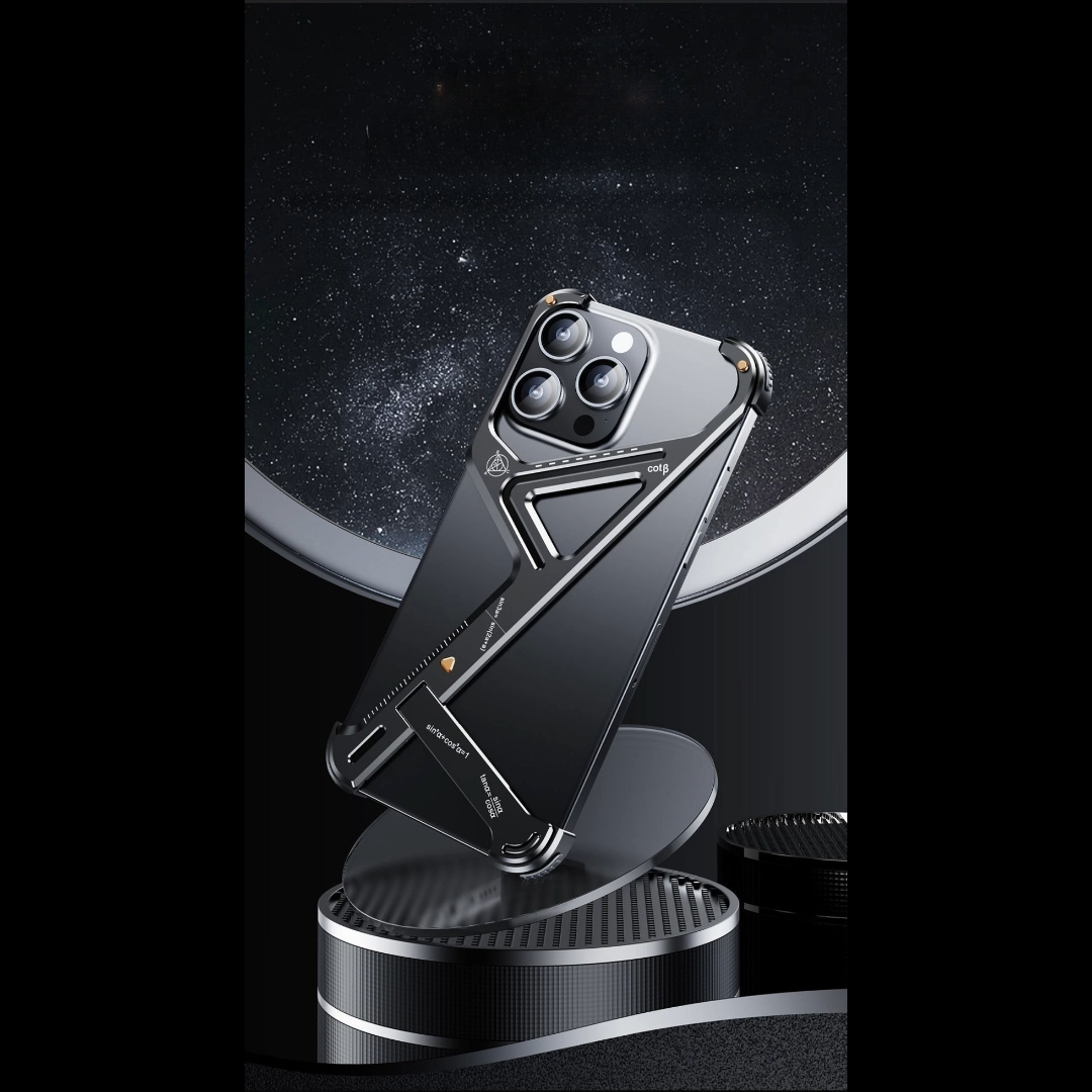 Metal Geometric iPhone Case: Bezel-Free with Built-in Stand