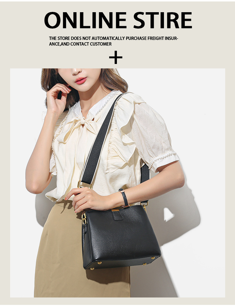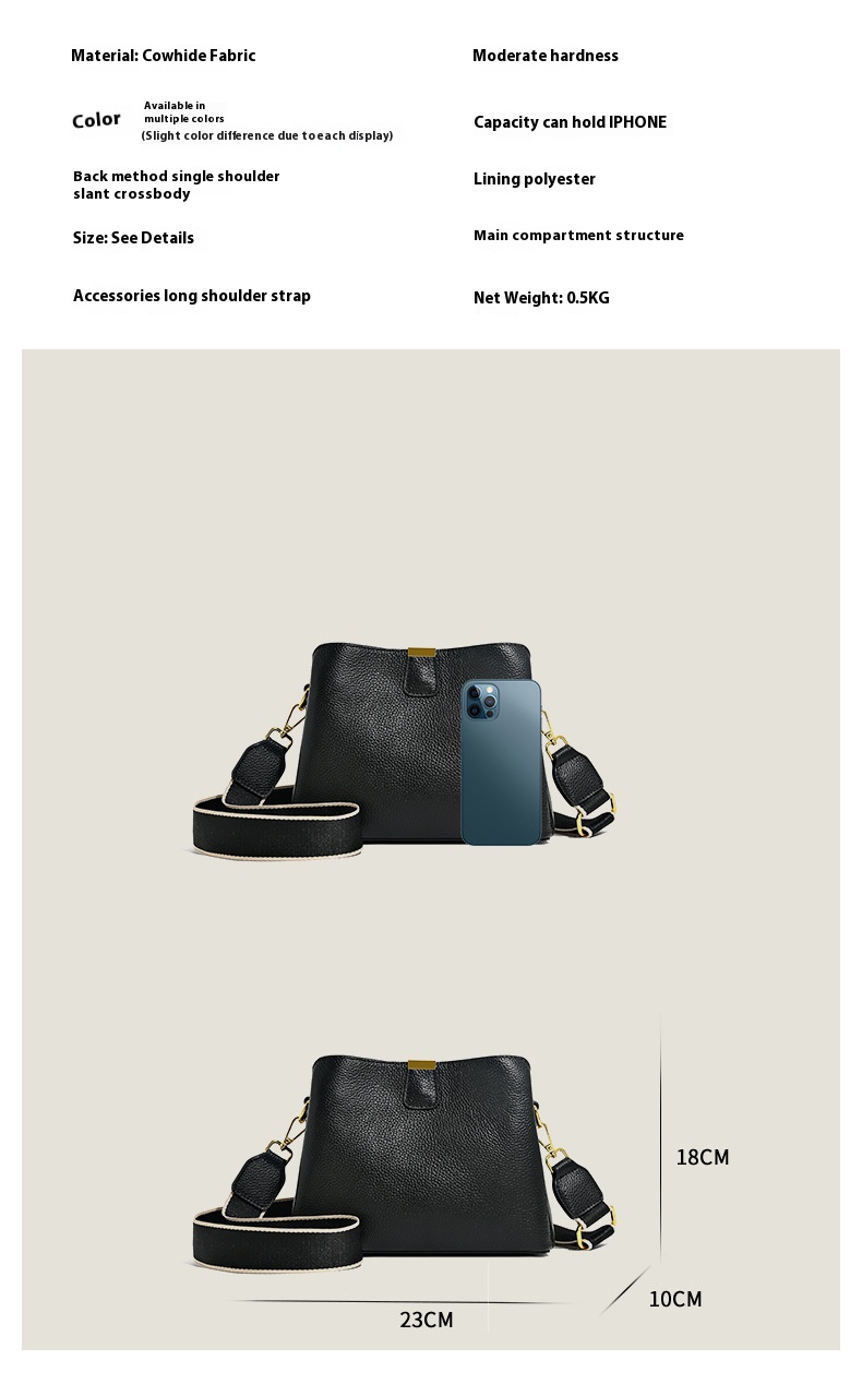 Durable Leather Fashionable Minimalist Crossbody Bag, Genuine Leather Tote Bucket Bag