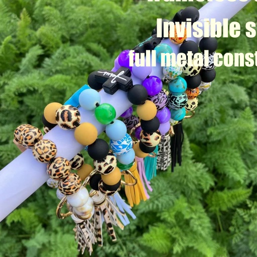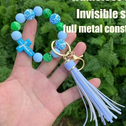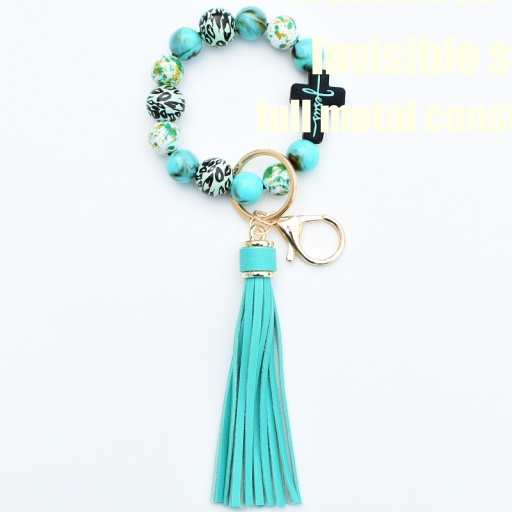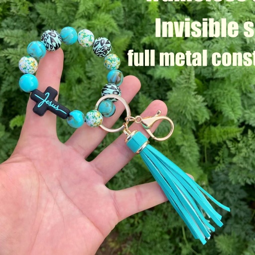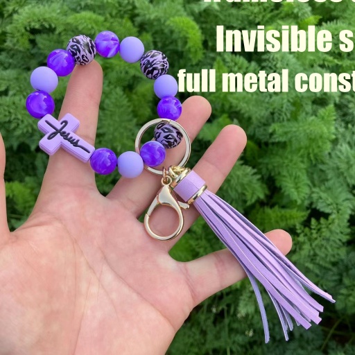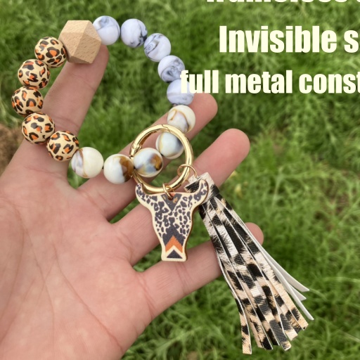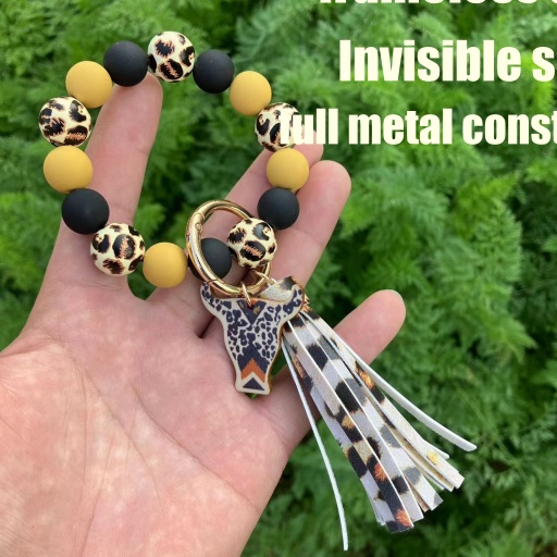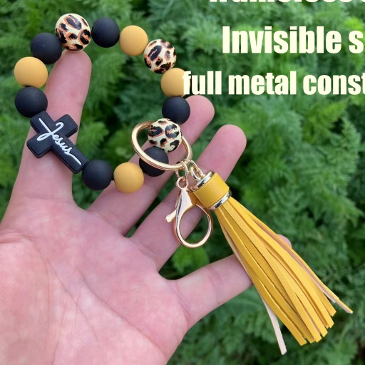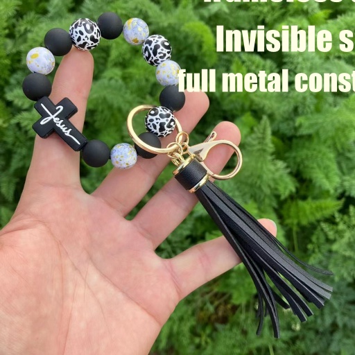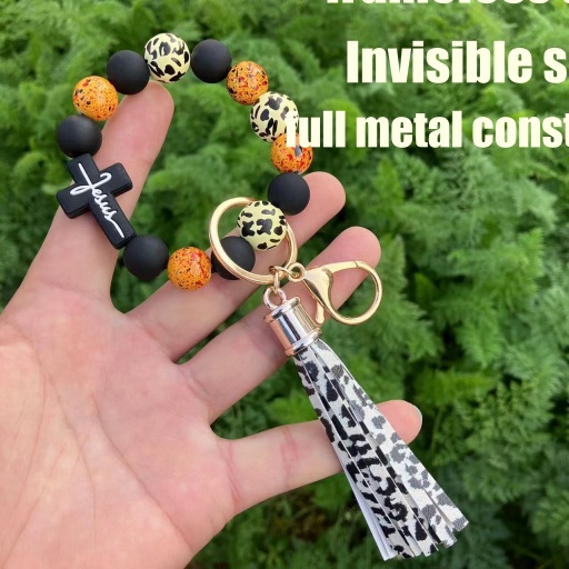 Leopard Print Beaded Bracelet & Silicone Cross Charm Keychain Set