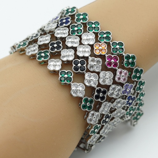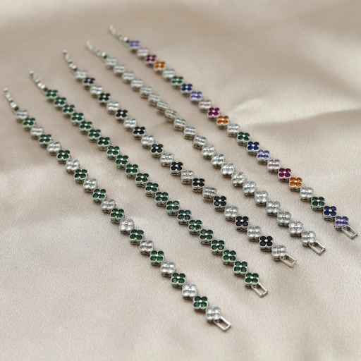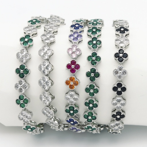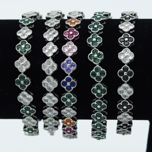 Openable Zircon-Encrusted Four-Leaf Clover Bracelet